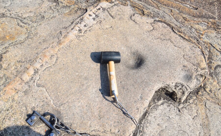 岩の上にゆっくり登って、中心の方にあるハンマーまで行きましょう~。