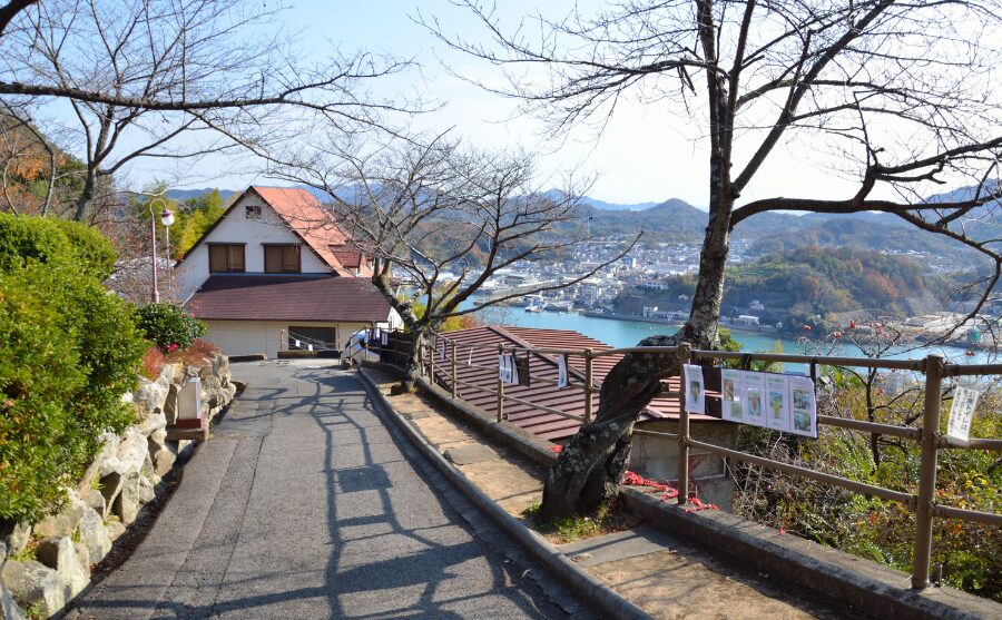 千光寺山ロープウェイの山頂駅からだと徒歩で約10分程度山を下ると到着します。